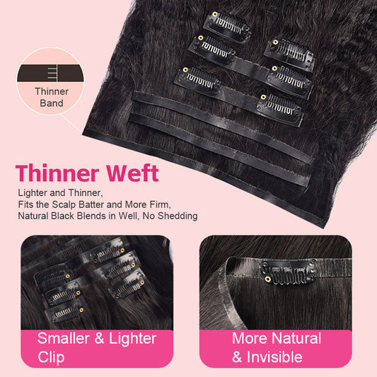 #1B 7Pcs Kinky Straight Free Shipping Small PU Seamless Clip ins Hair Extensions Real Human Hair 120G CVOHAIR