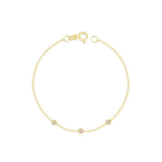 3 Diamonds Women's Bracelet in 14k Solid Gold