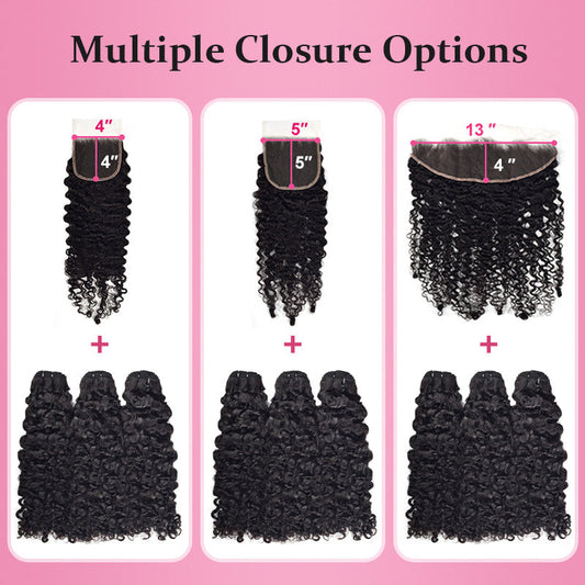 #1B Burmese Curly 3 Bundles with HD lace Closure Deal 100% Human Hair CVOHAIR
