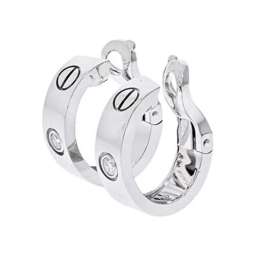 Carthttier 18K White Gold Love Diamond Huggie Earrings