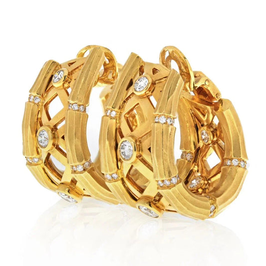 Carthttier 18K Yellow Gold Bamboo 1.50 carats Diamond Huggie Earrings