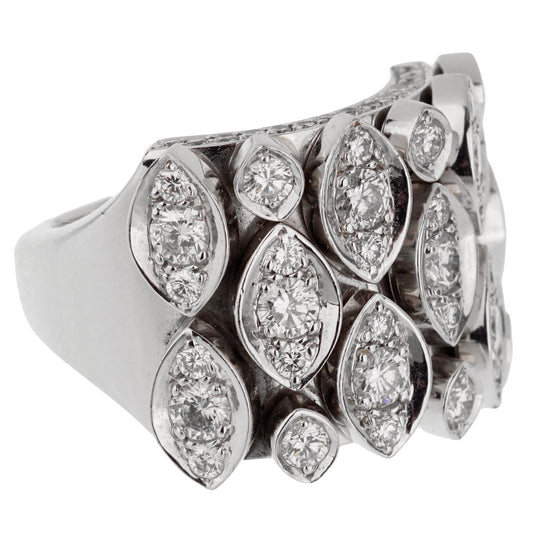 Carthttier Diamond 18k White Gold Bombe Cocktail Band Ring