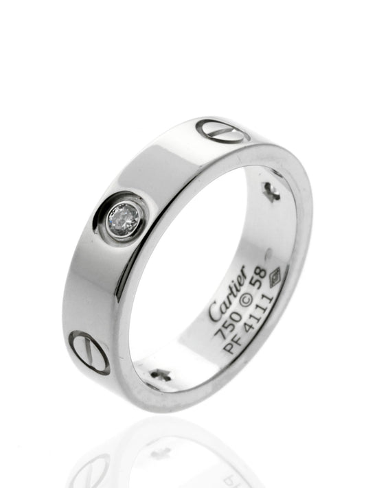 Carthttier Love 3 Diamond Ring in 18k White Gold Sz 50