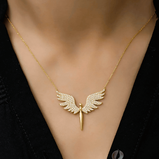 Angel Pendant Necklace White Zircon Stones in Sterling Silver