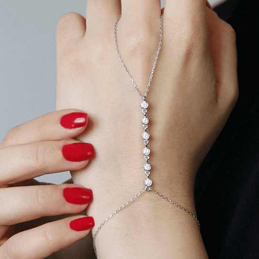 Crystal Hand Chain Sterling Silver Slave Bracelet