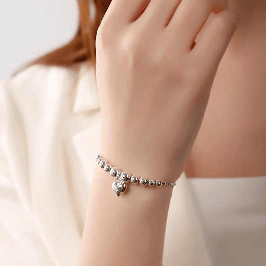Heart Charm Slider Ball Bracelet with Box Chain