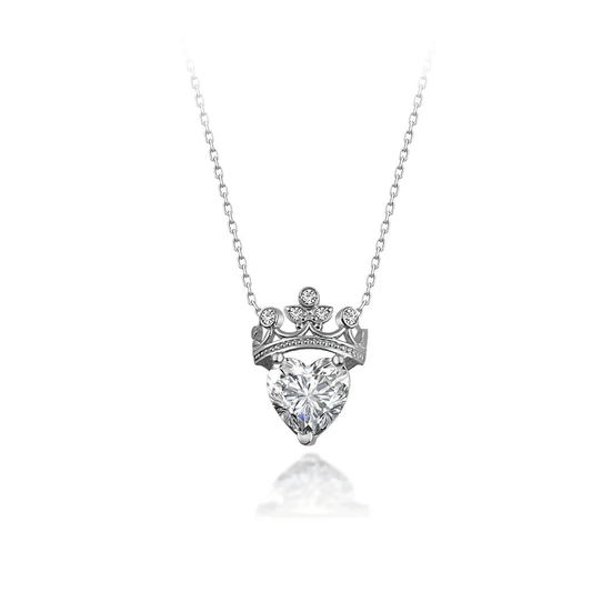 Gemstone Heart Queen Crown 925 Silver Necklace