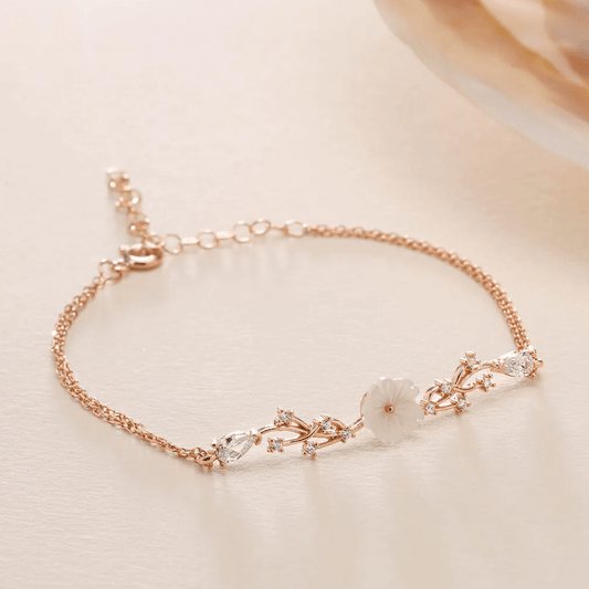 Petite Magnolia Flower Bracelet Rose Gold Plated Chain