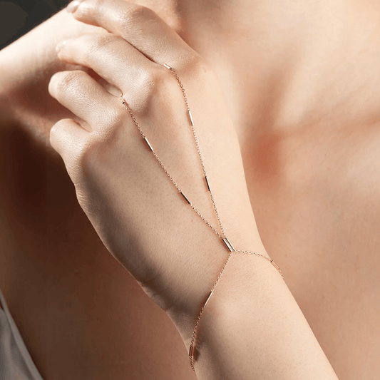 Gold-Plated Silver Hand Chain with Zircon Stones