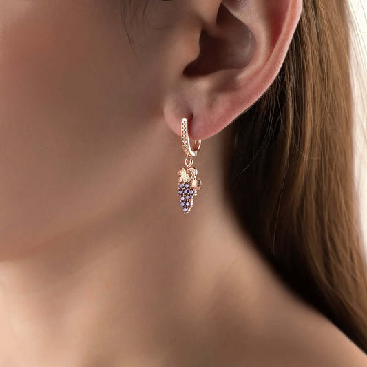 Purple Zirconia Grapes Dangle Earrings Gold-Plated Silver