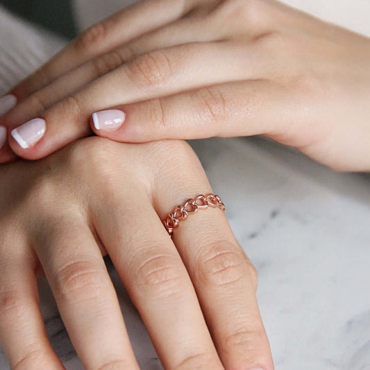 Rose Gold-Plated Open Band Love Ring with Hearts