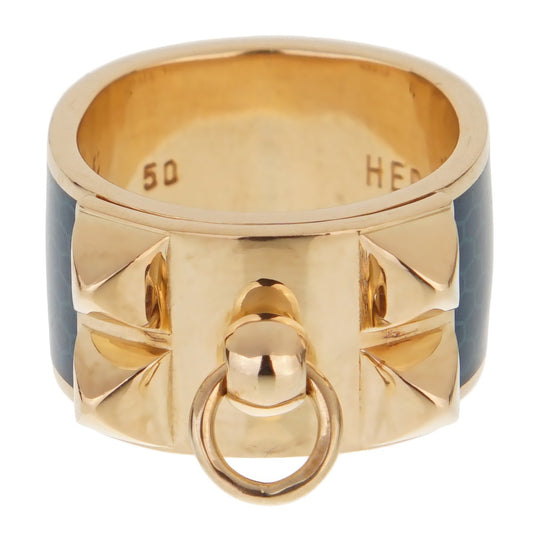 Herthtmes Collier De Chien 18k Yellow Gold Blue Enamel Ring Sz 5