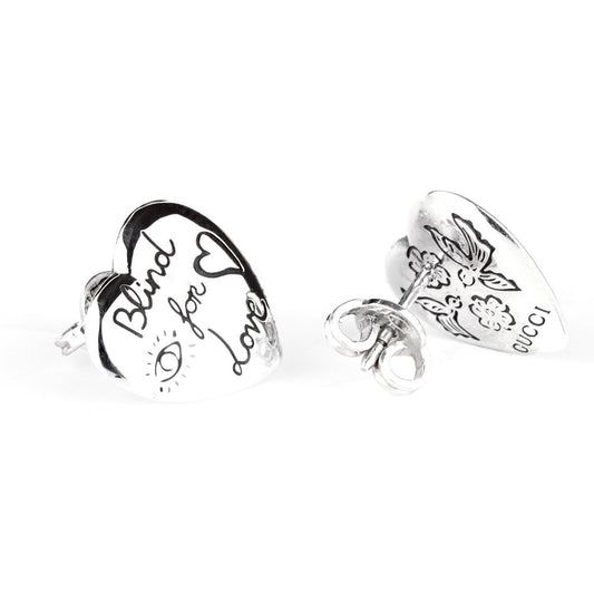 Guthtcci Blind for Love Heart Silver Earrings