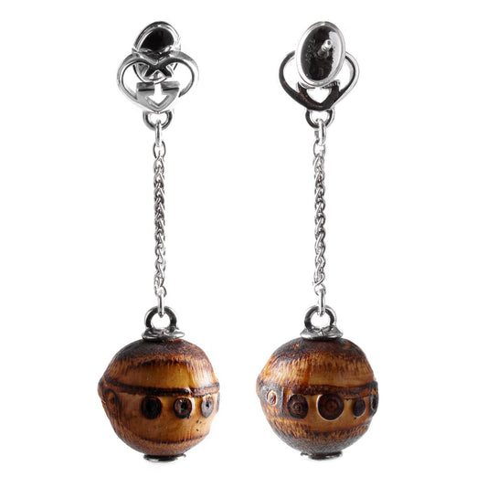 Guthtcci Bamboo Double G Silver Drop Earrings