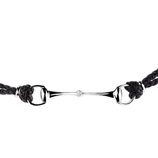 Guthtcci Leather Braided Horsebit Silver Bracelet