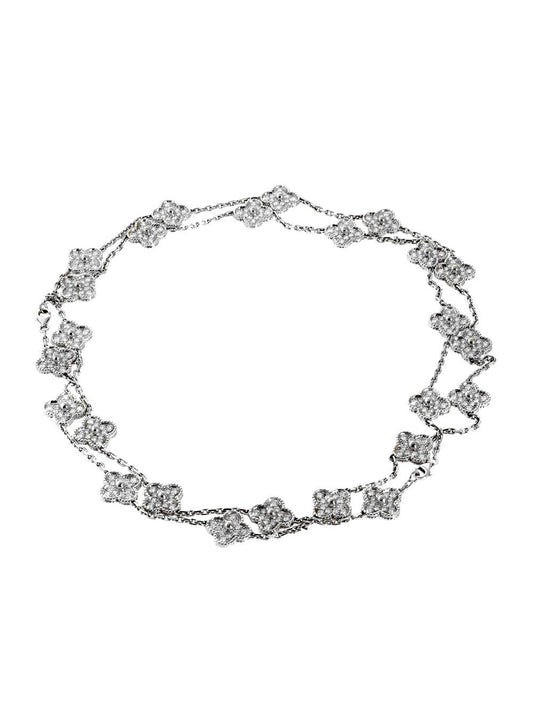 Vathtn Clthteef & Arpels Diamond Alhambra Necklace White Gold