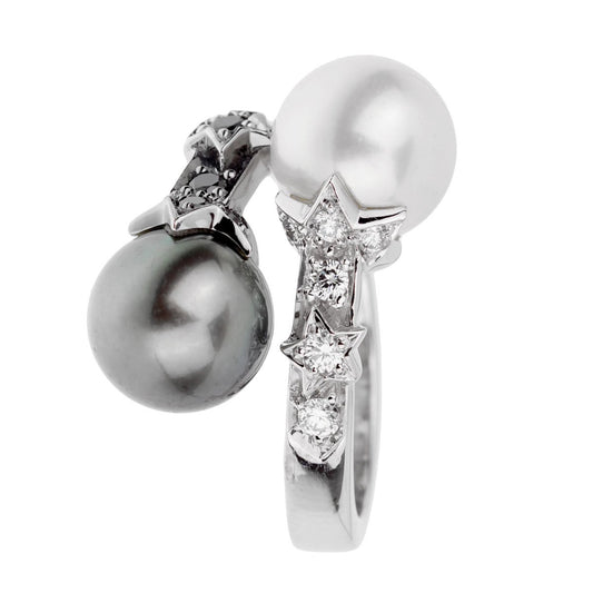 Chathtnel Diamond Pearl Bypass White Gold Ring