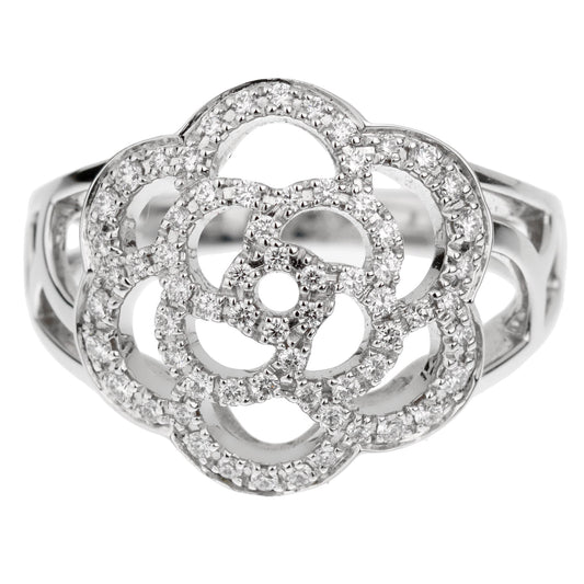 Chathtnel Camellia 18k White Gold Diamond Cocktail Ring