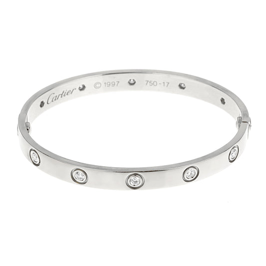 Carthttier Classic Love 10 Diamond 18k White Gold Bangle Bracelet