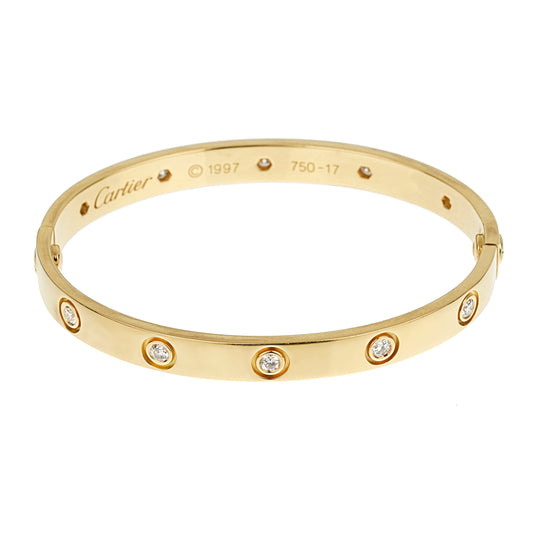 Carthttier Classic Love 10 Diamond 18k Yellow Gold Bangle Bracelet