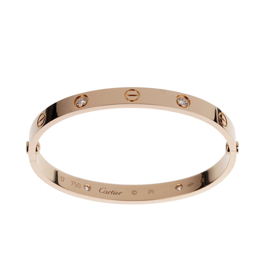 Carthttier Love Classic 4 Diamond 18k Rose Gold Bangle Bracelet Sz 17