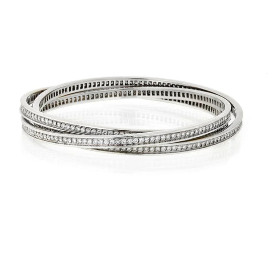 Carthttier Trinity 18K White Gold All Diamond Full Circle Slip On Bangle Bracelet