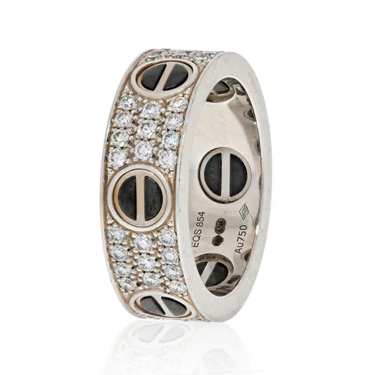 Carthttier Love 18K White Gold Diamond And Black Ceramic Band Ring
