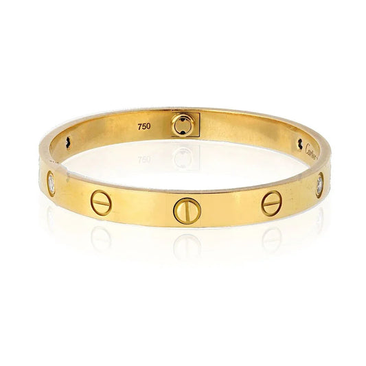 Carthttier Love 18K Yellow Gold 4 Diamond Vintage Model Size 17 Bracelet