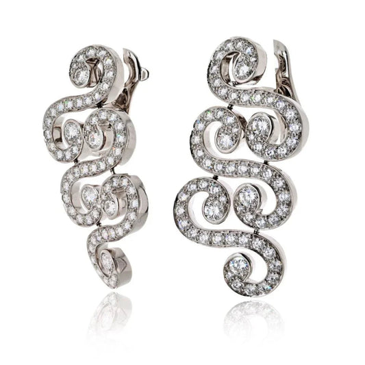 Carthttier 18K White Gold Arabesque Scroll 6.50cttw Earrings