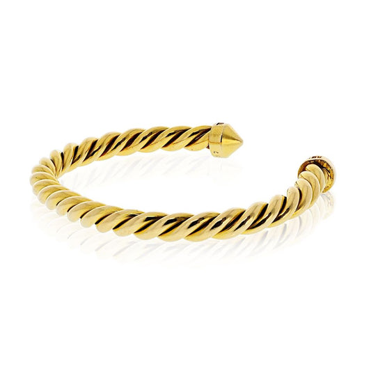 Carthttier 18K Yellow Gold Twisted Cuff Size 16 Bangle Bracelet