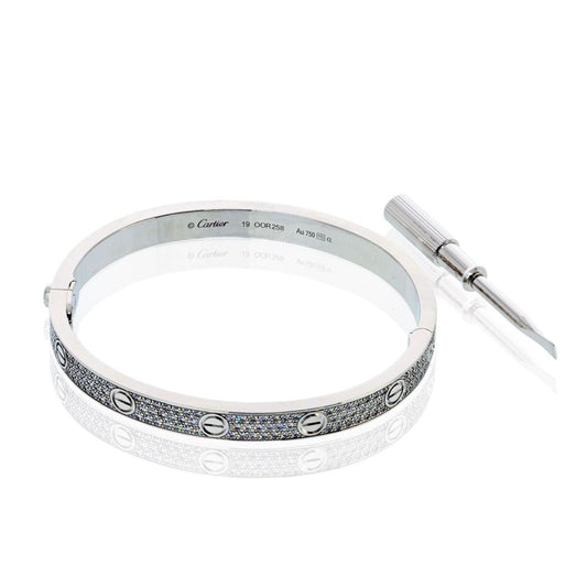 Carthttier Love 18K White Gold Pave Diamonds Size 19 Bracelet
