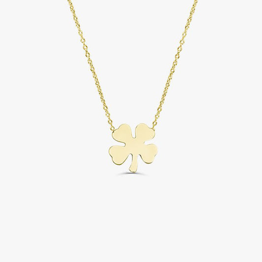 Four Leaf Clover Necklace 14k Solid Gold Mini Pendant
