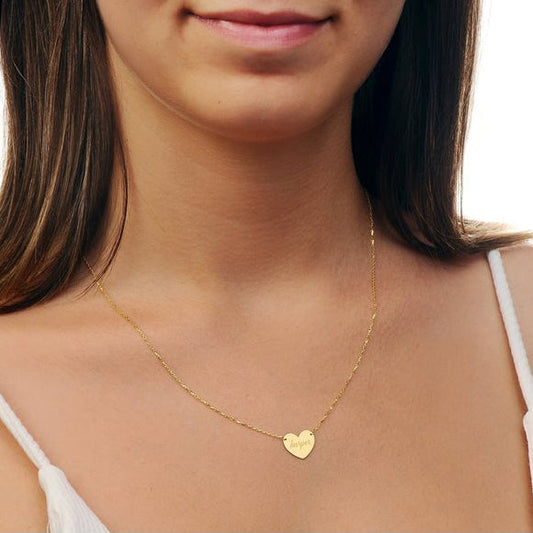 Solid Gold Heart Necklace with Chain Custom Engraving