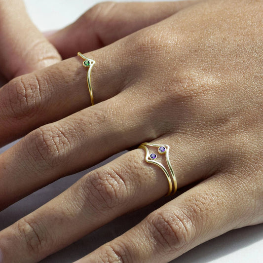 Two Stone Ring Gift for Her Birthstone Free Size Band Gold