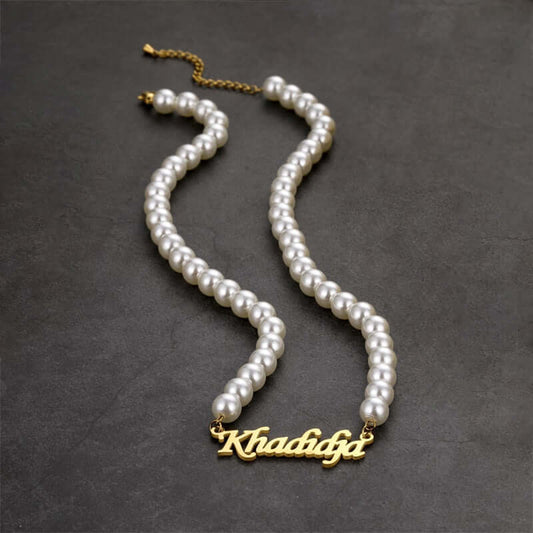 Custom Name Pearl Necklace Personalized Nameplate Choker