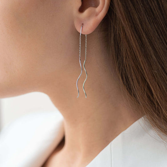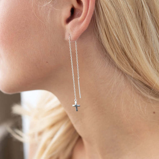 Cross Charm Drop Threader Earrings Silver Jewelry