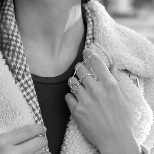 Chain Connected Rings 925 Sterling Silver Linked Bands