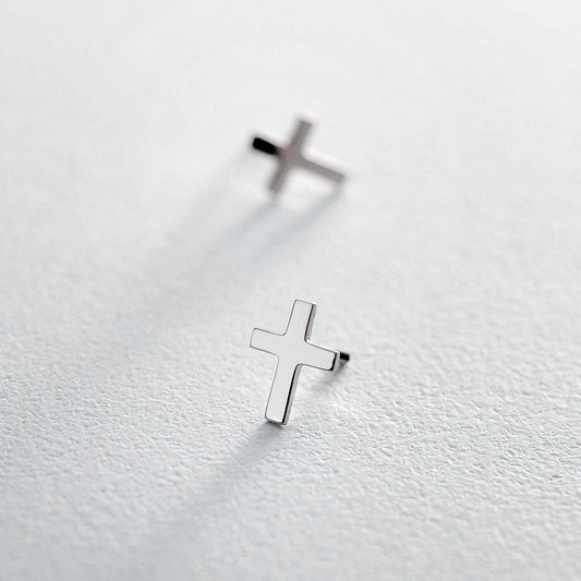 Minimal Design Studs 14k Solid Gold Cross Earrings Daily Jewelry