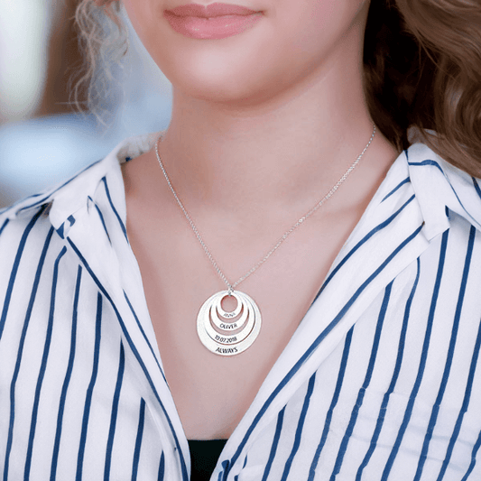 Sterling Silver Engraved Stacked Circles Necklace Family Gift