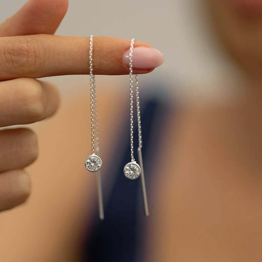 Long Chain Threader Earrings with Zirconia Stone in 925 Silver