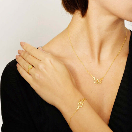 Double Female Charm Lesbian LGBTQ Necklace in Gold-Plated Silver