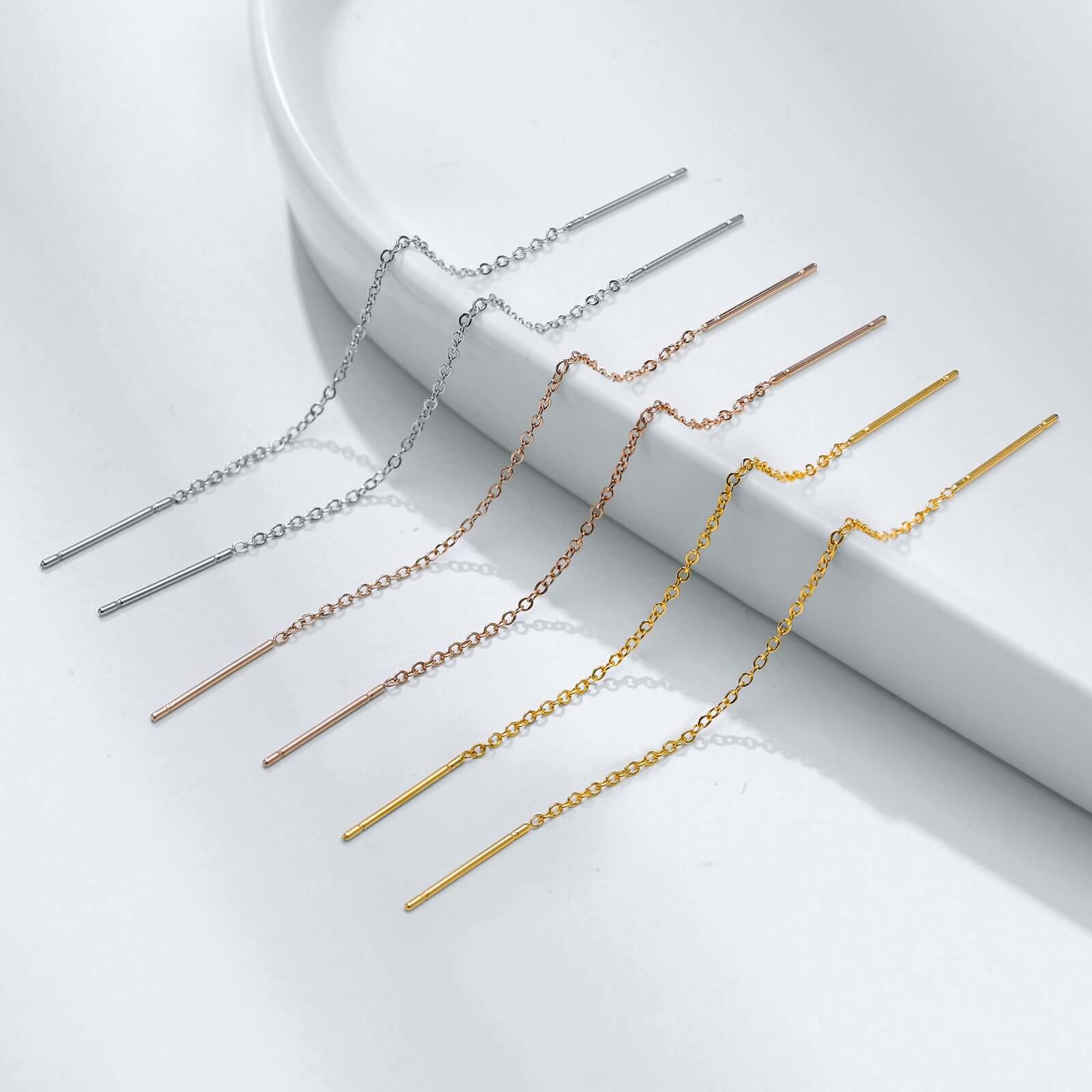 14k Solid Gold Threaders Delicate Long Chain Earrings