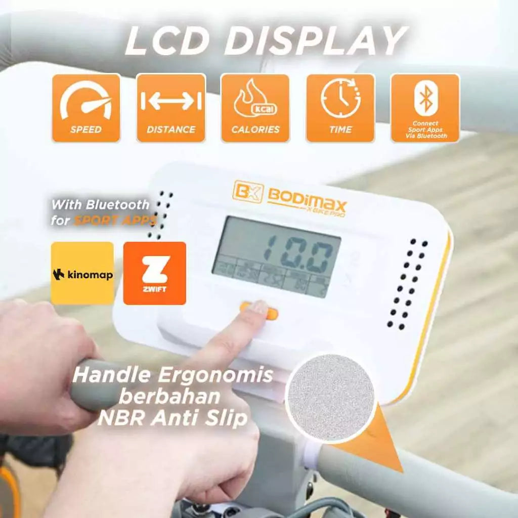 - Material Berkualitas Tinggi: Terbuat dari besi anti karat, ABS, dan NBR yang kuat dan tahan lama, BODIMAX X-BIKE PRO akan menjadi teman latihan Anda untuk waktu yang lama.