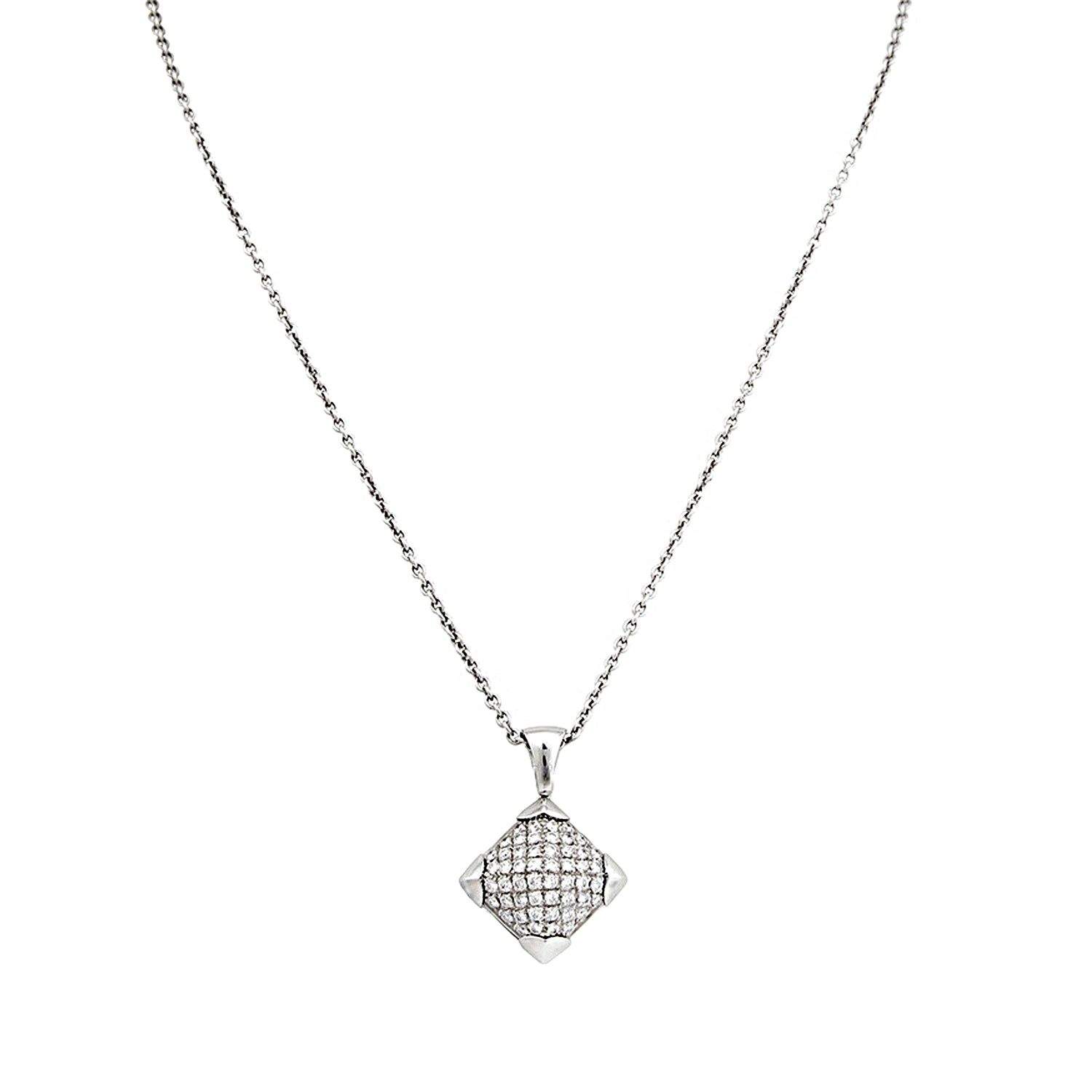 Bvlthtgari Pyramid Diamond White Gold Pendant Necklace