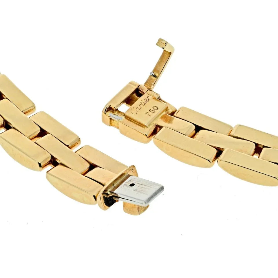 This particular design comes from Panthere collection, it is crafted of 18 karat yellow gold and features a collar of Maillon links with multiple center links pave set with round brilliant cut diamonds, approximately 1.40 total carat weight.