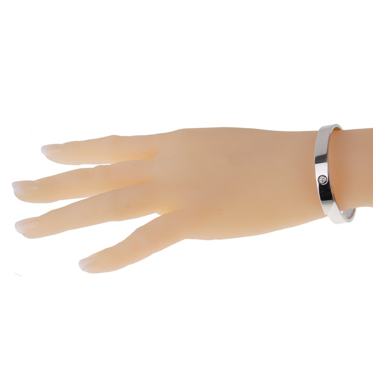 A chic Carthttier Anniversary bangle bracelet set with a .10ct round brilliant cut diamond in 18kt white gold. The bracelet measures 17cm and will fit a wrist up to 6.69' in length.
