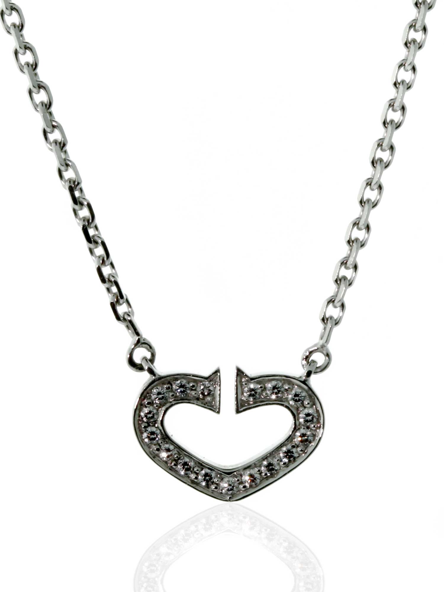 Carthttier C Heart Diamond Necklace in 18k White Gold