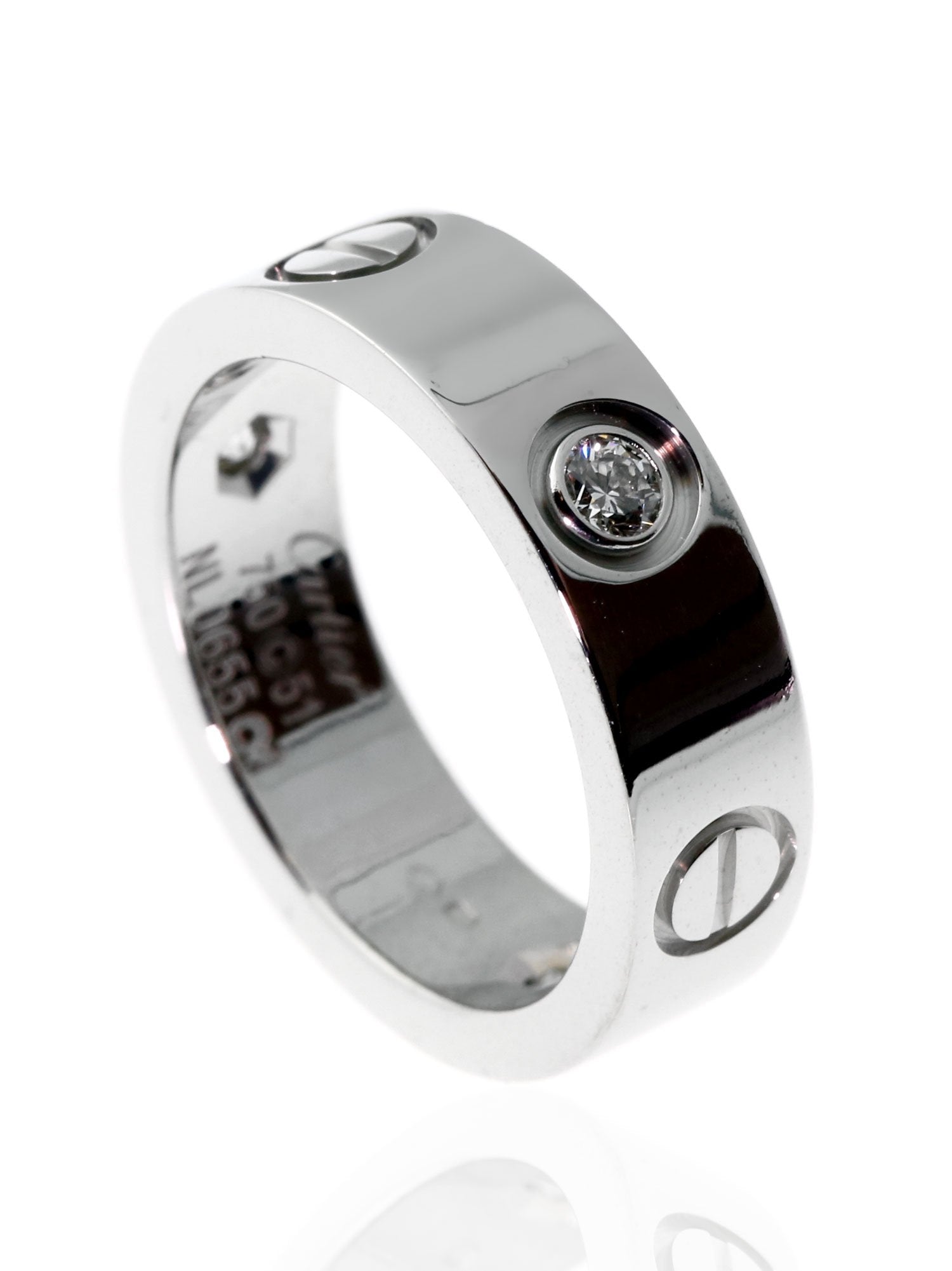 Carthttier Love 3 Diamond Ring in 18k White Gold Sz 51