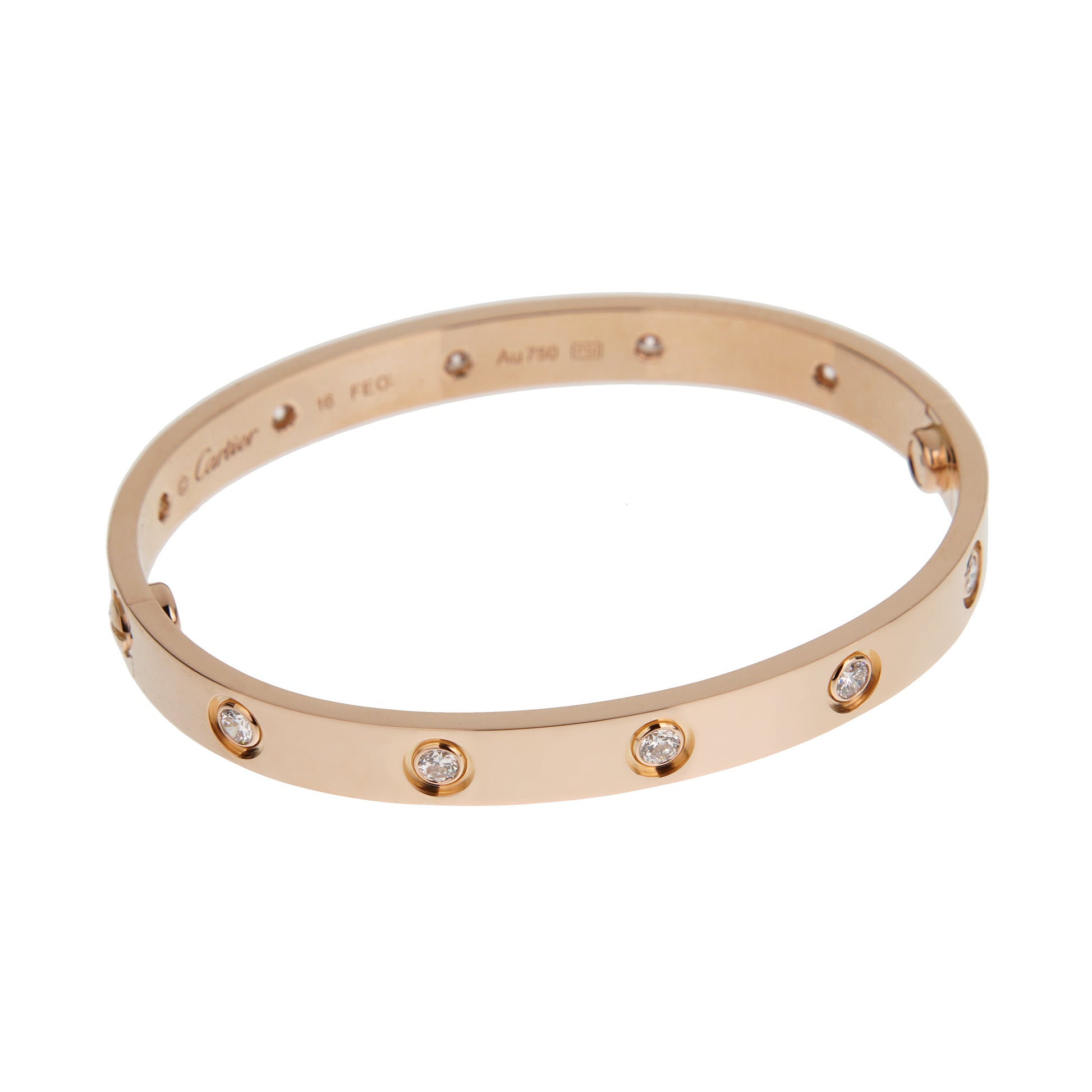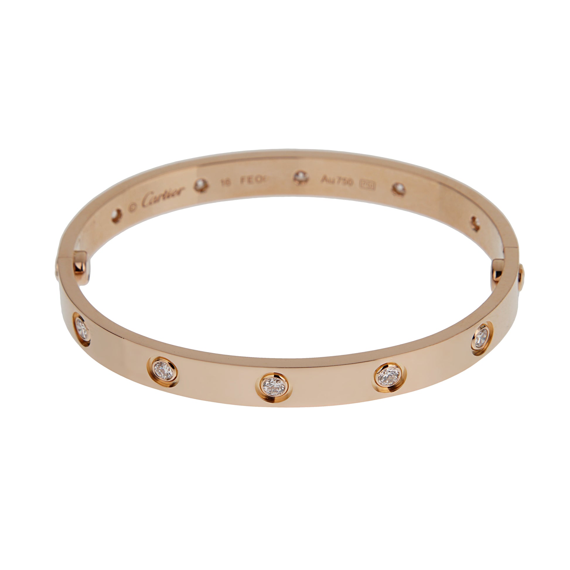 Carthttier Love Bracelet Classic 10 Diamond 18 Rose Gold Sz 16