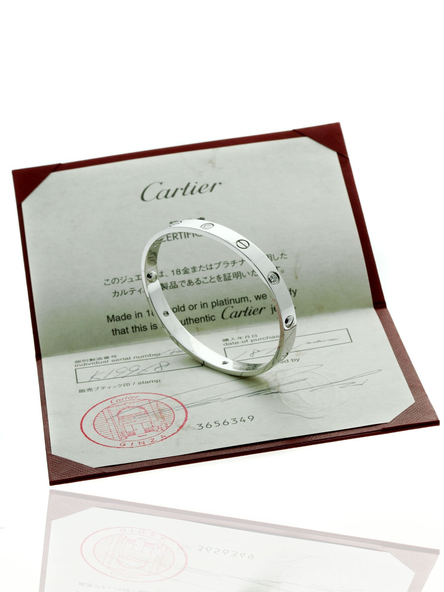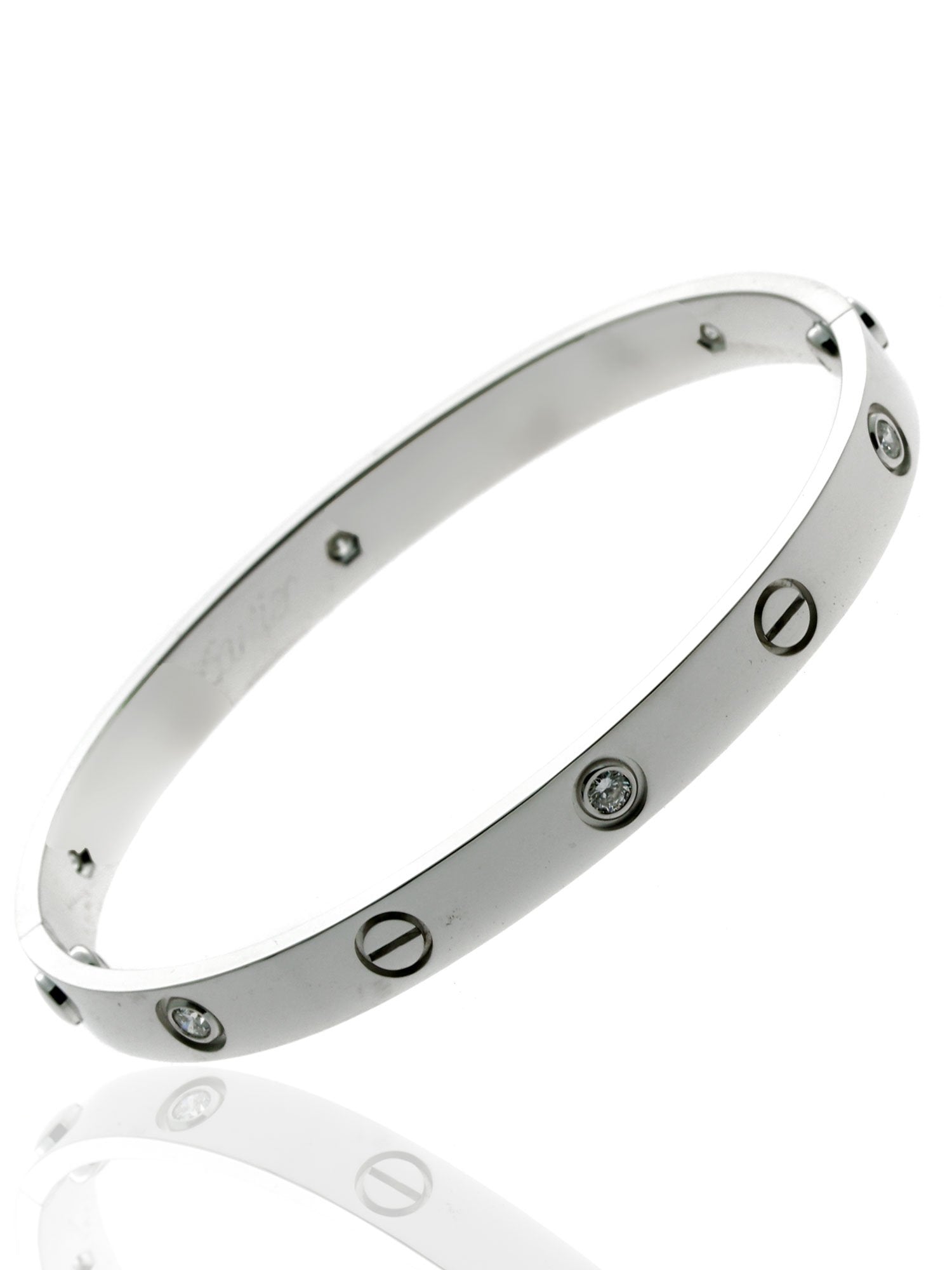 Carthttier Love Diamond Bangle Bracelet 18k White Gold Sz 18